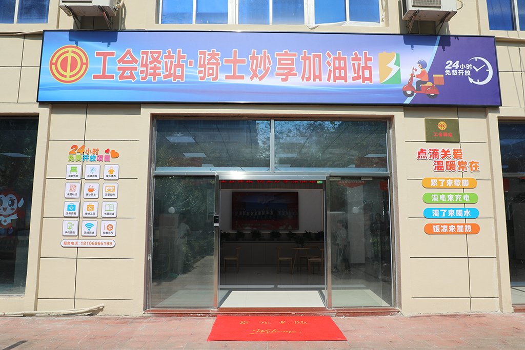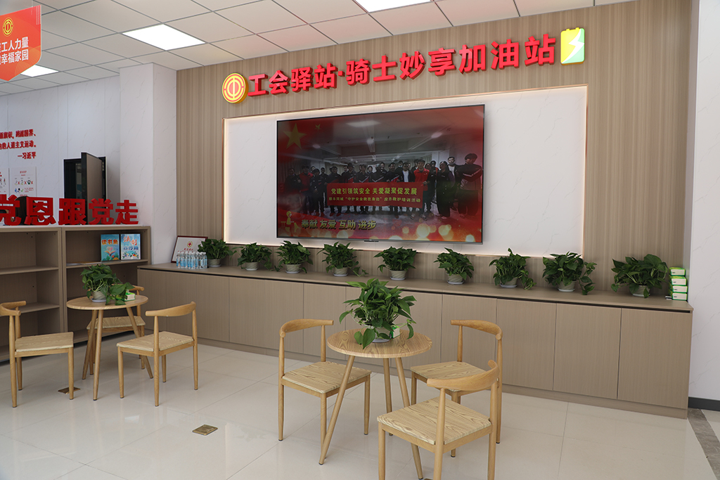走进工会驿站,常见桌椅、空调、饮水机、微波炉、应急医药箱等设施一应俱全,这些看似简单的配备,却为在烈日下奔波、风雨中坚守的劳动者们解决了实际困难。