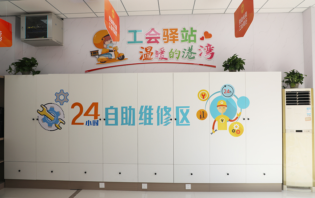 驿站还设有不少“宝藏区域”。24小时自主维修区为新业态劳动者提供电动车充电、维修服务等后勤保障服务。此外,还有心理咨询室、母婴室、调解室,满足新业态劳动者多样需求。