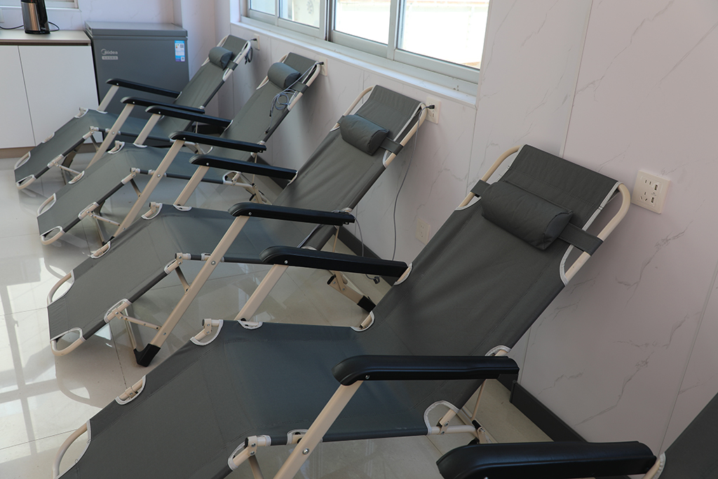 “这个躺椅是我们特别准备的,户外劳动者们可以在这边午休、小憩,累了就能躺会,补充体力。”市职工服务中心工会驿站负责人说道。